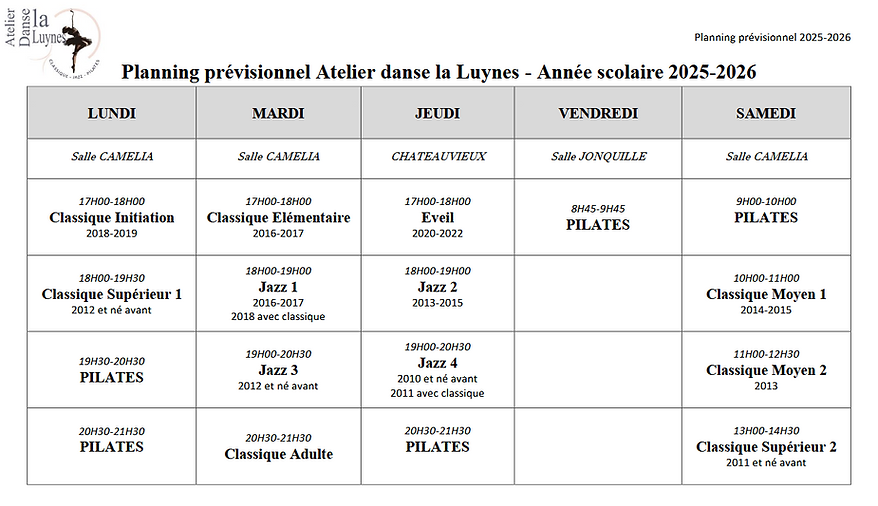 Pour les horaires prévisionnels de l'année 2025 - 2026 :
